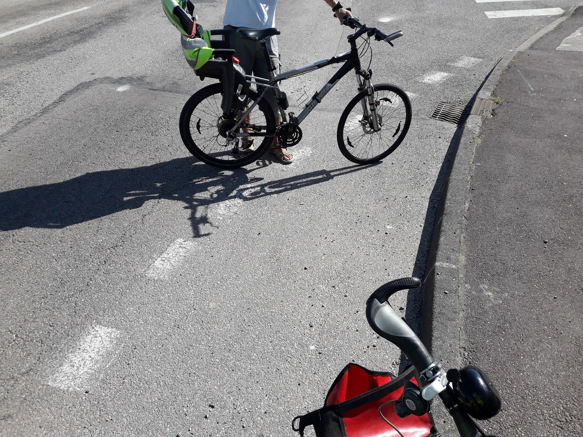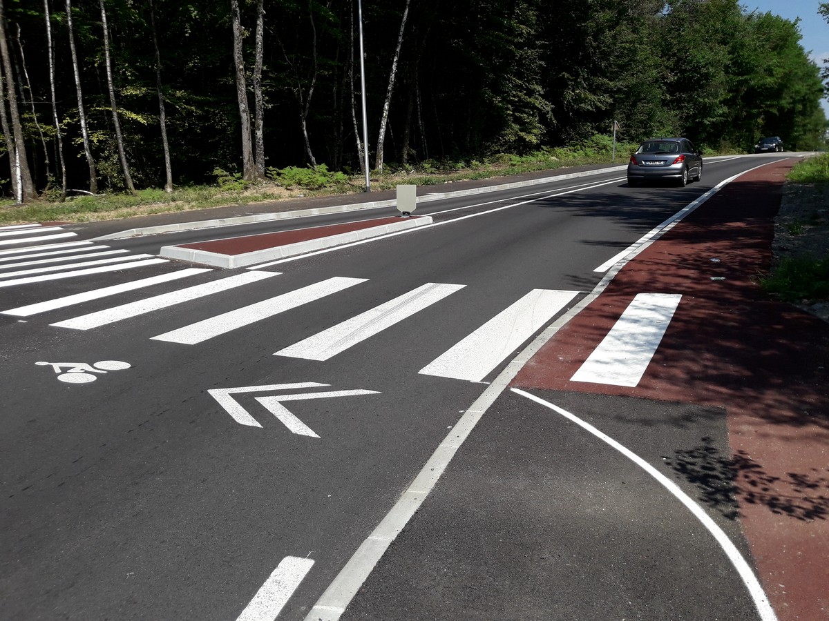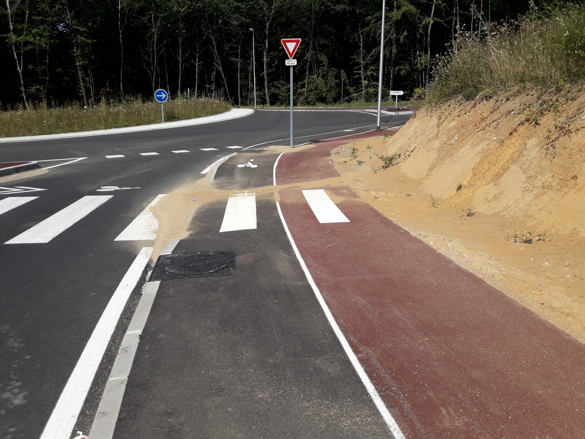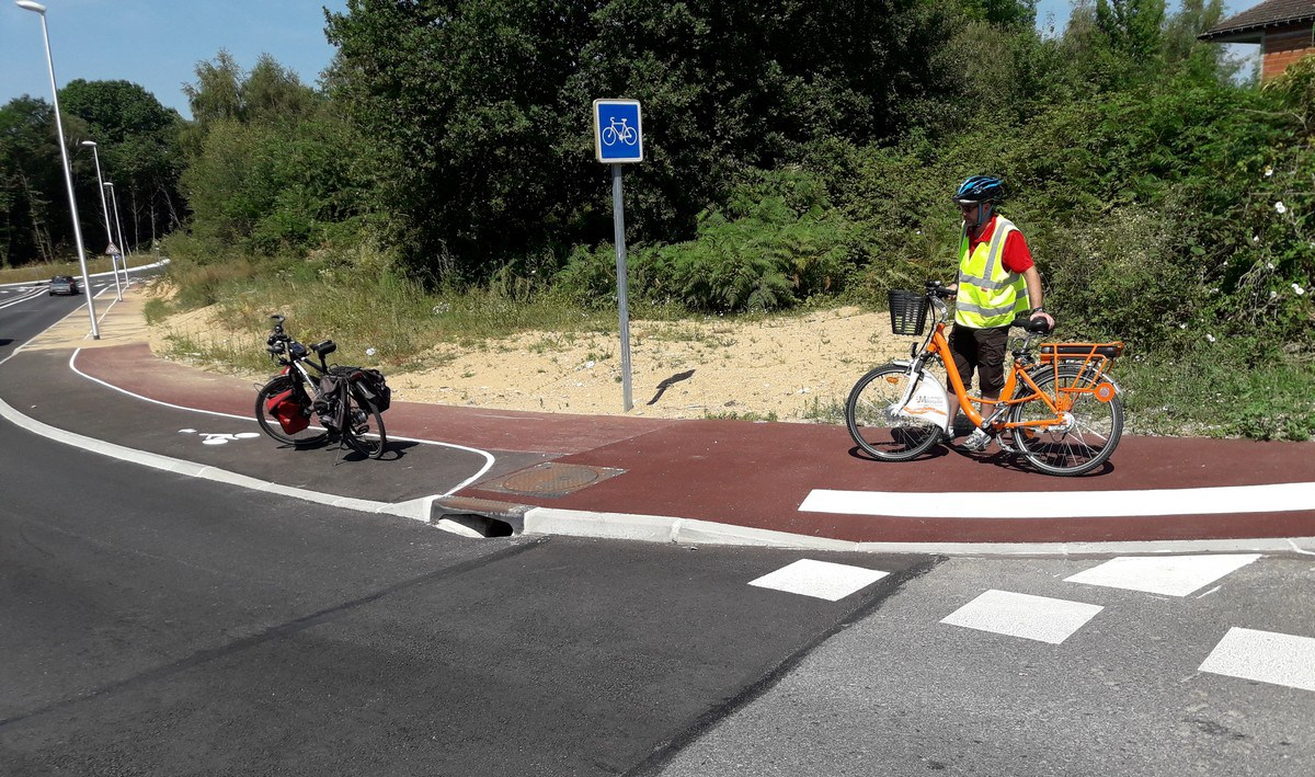 Le temps de notre observation, 3 cyclistes ont franchi le carrefour en utilisant la route, ce qui n’est pas très rassurant mais permet de savoir où l’on va…