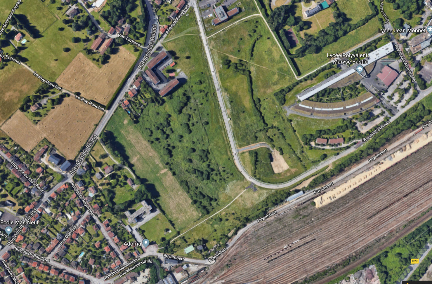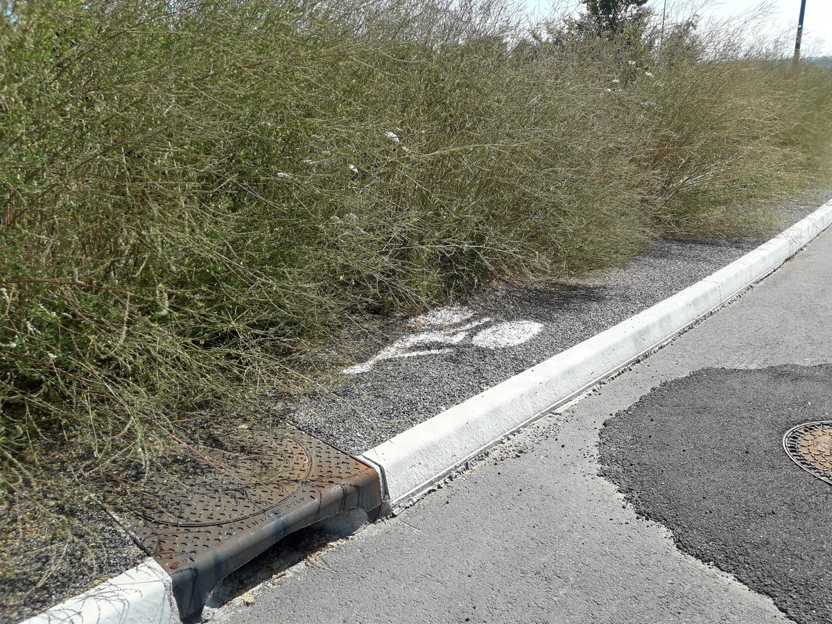 Nous allons à la découverte d’un itinéraire qui permettrait de désenclaver les lycées Maryse Bastié et Jean Monnet via une voie privée dans une zone en cours d’aménagement. Un trottoir cyclable avait visiblement été prévu avant la fin du goudronnage, mais la végétation a déjà eu raison de lui… Des réflexions seront à mener avant l’aménagement définitif de cette zone.