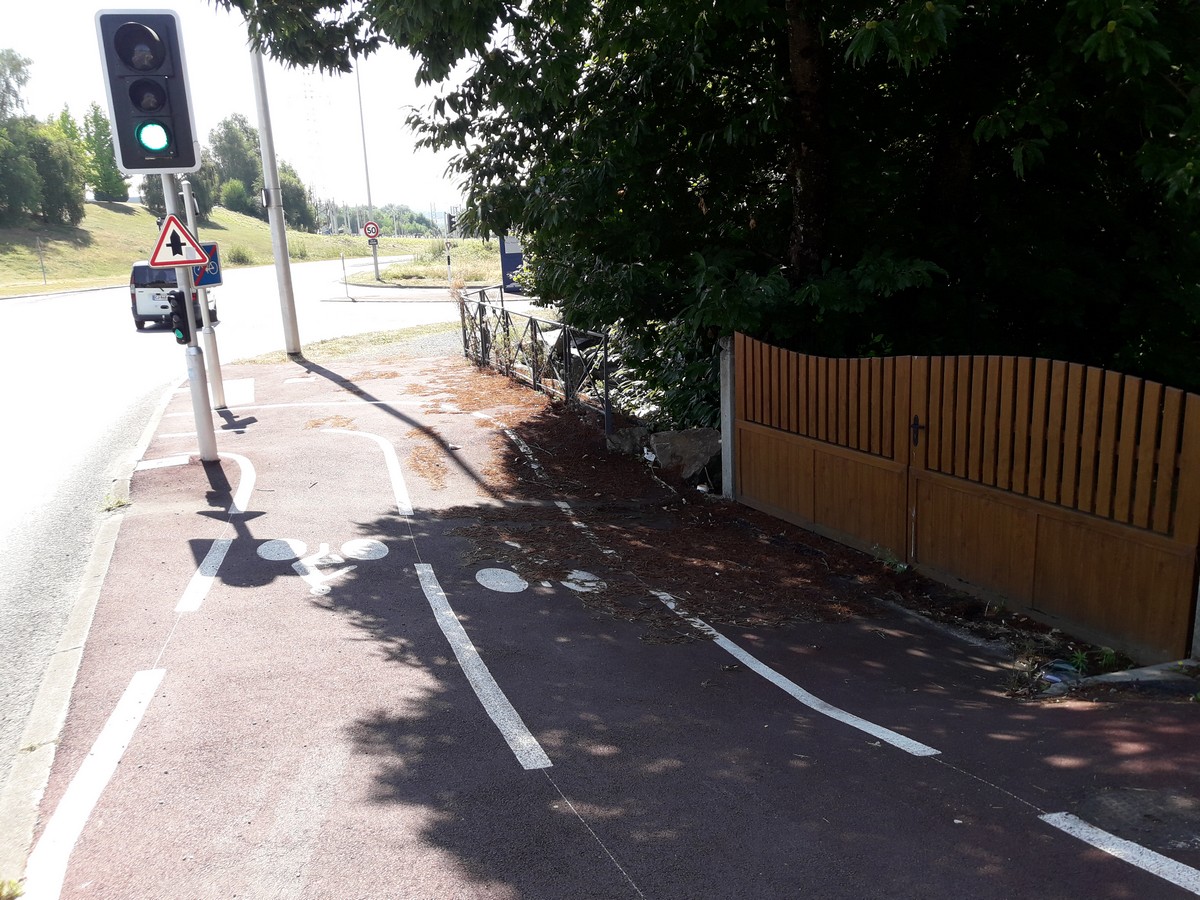 Cet aménagement récent, probablement coûteux, emprunte malheureusement les trottoirs au détriment des piétons, il a un cheminement compliqué avec obstacles et dénivelés, il ne dessert pas les écoles d’ingénieurs et ne débouche pas en direction de Beaubreuil. Il est peu pratiqué, les cyclistes préférant la route, et la végétation commence à reprendre ses droits…